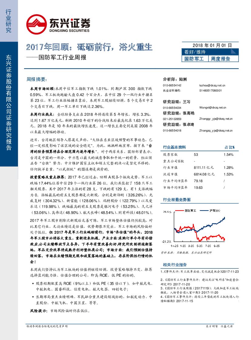 东兴证券:国防军工行业周报:2017年回顾:砥砺前行,浴火重生.pdf