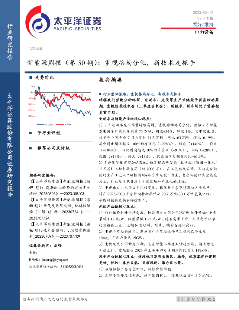 太平洋证券:新能源周报(第50期):重视格局分化,新技术是抓手.pdf