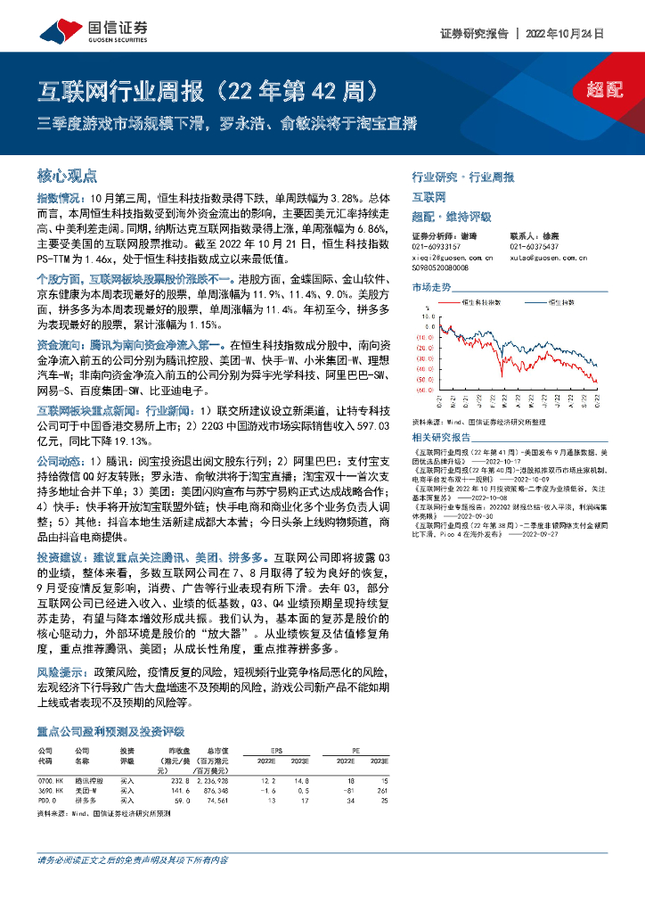 国信证券:互联网行业周报(22年第42周):三季度游戏市场规模下滑,罗永浩、俞敏洪将于淘宝直播.pdf