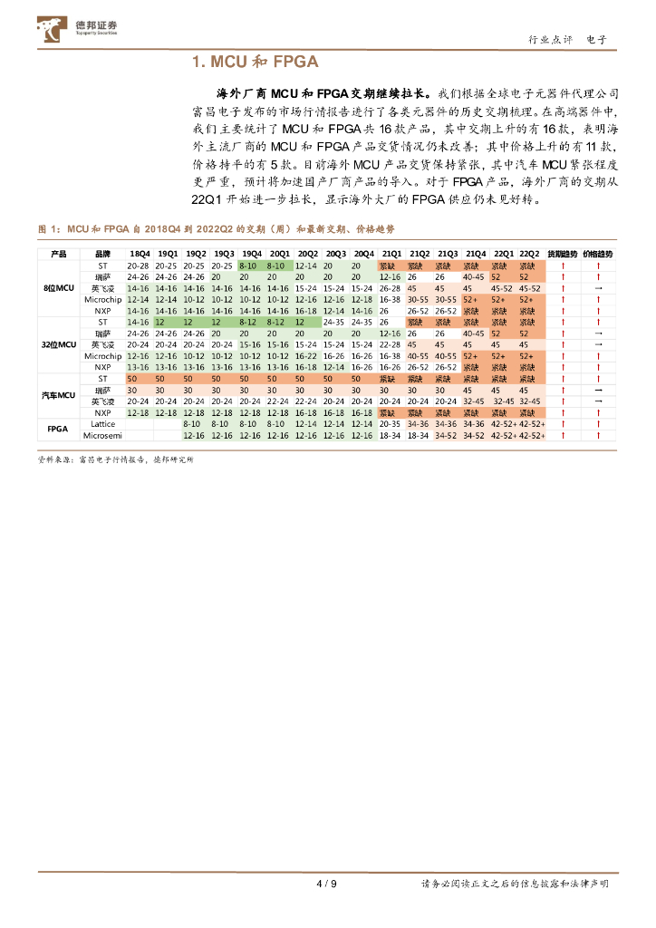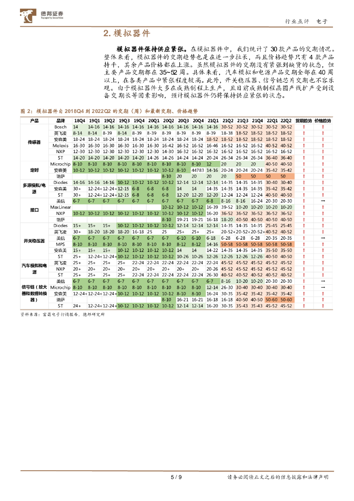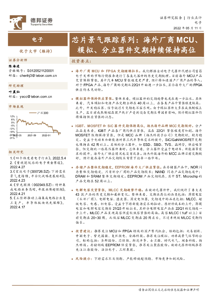 德邦证券:芯片景气跟踪系列-海外厂商 MCU、模拟、分立器件交期持续保持高位.pdf