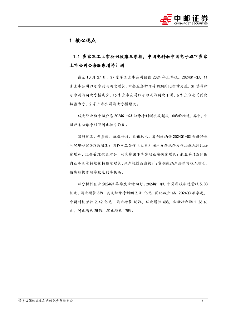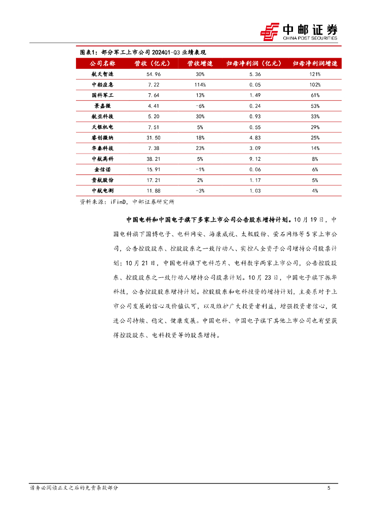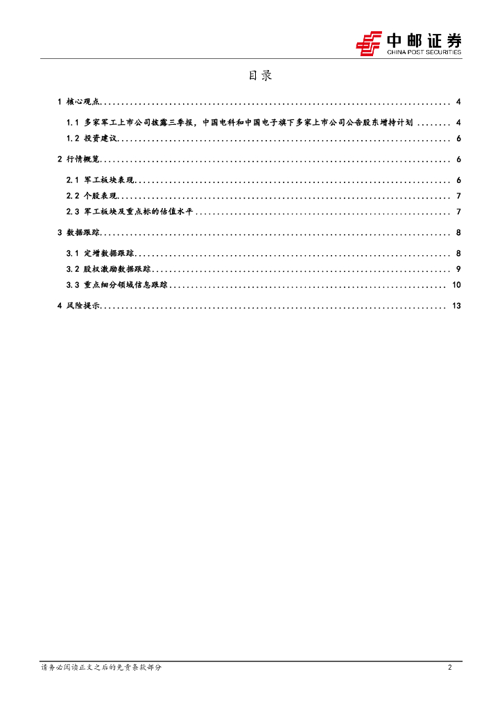 中邮证券:国防军工行业报告:多家军工上市公司披露三季报,中国电科和中国电子旗下多家上市公司公告股东增持计划.pdf