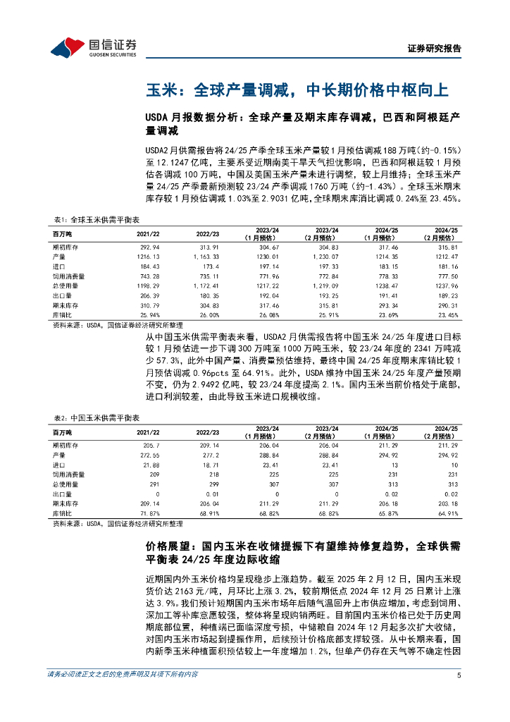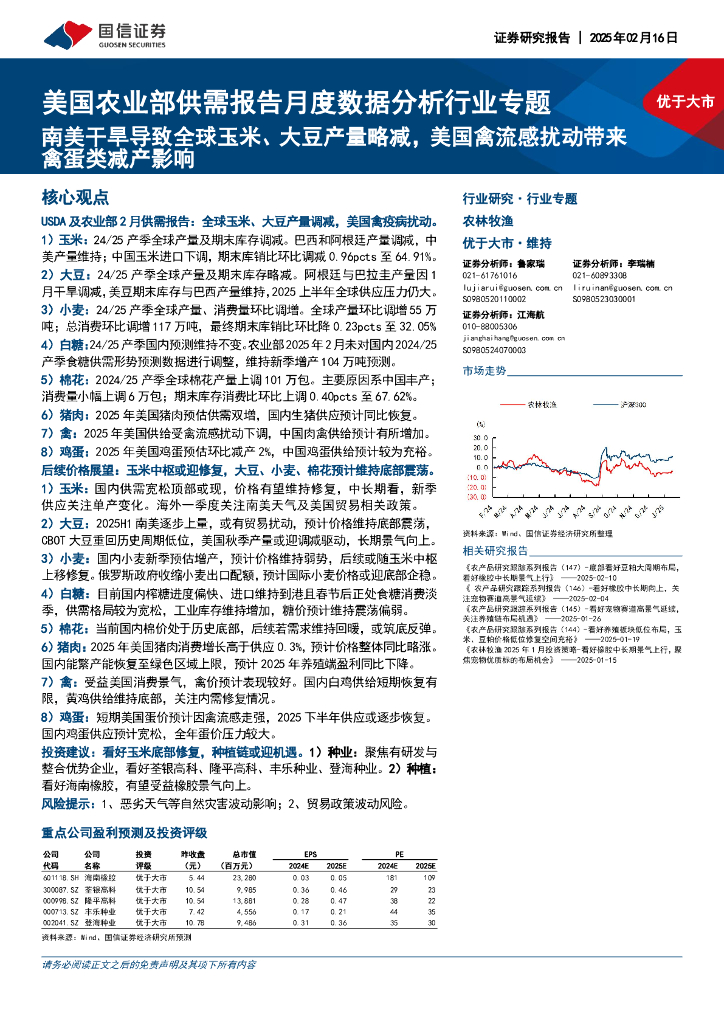 国信证券:农林牧渔:美国农业部供需报告月度数据分析行业专题-南美干旱导致全球玉米、大豆产量略减,美国禽流感扰动带来禽蛋类减产影响.pdf