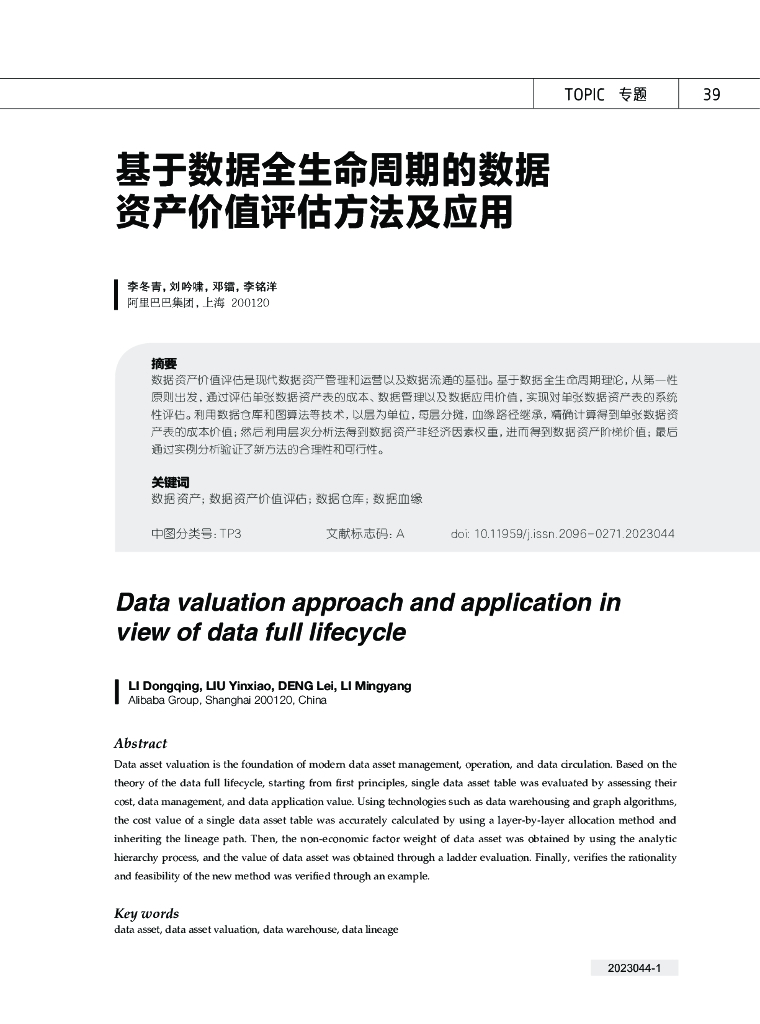 阿里巴巴:基于数据全生命周期的数据资产价值评估方法及应用.pdf