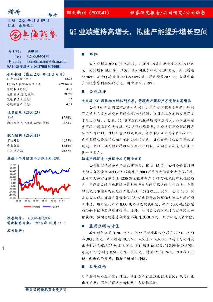 上海证券:回天新材(300041)-Q3业绩维持高增长,拟建产能提升增长空间.pdf
