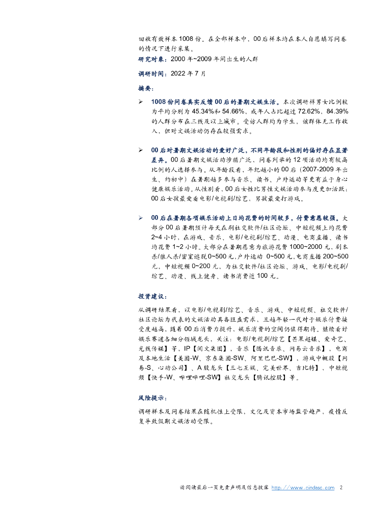 信达证券:传媒互联网:2022年暑期00后闲暇时间文娱活动洞察报告.pdf