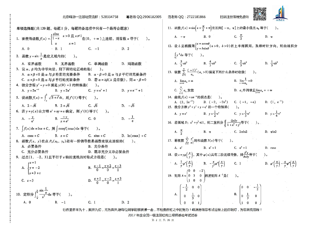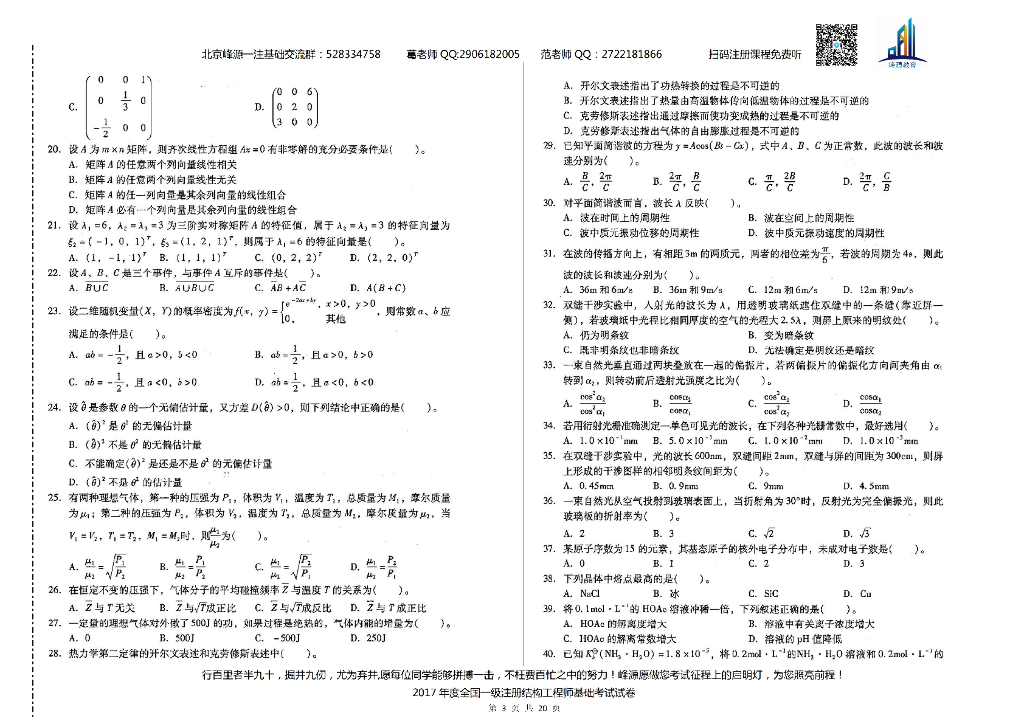 2017年一级注册结构工程师基础考试空白卷及答案解析.pdf