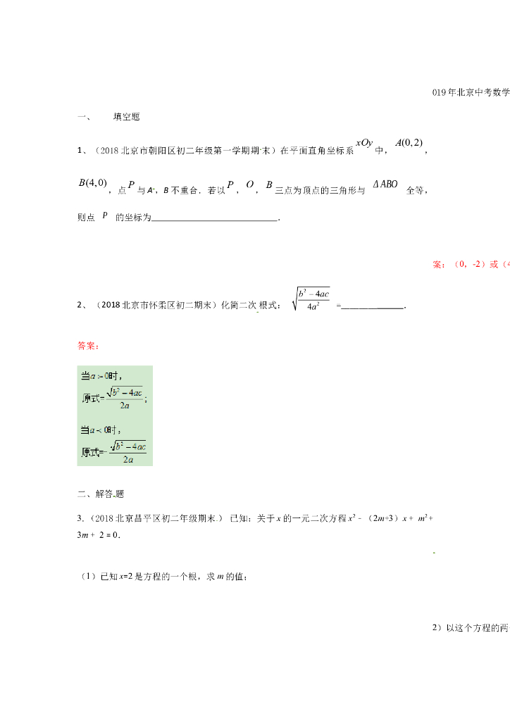 北京中考数学习题精选:分类讨论思想(含参考答案).doc