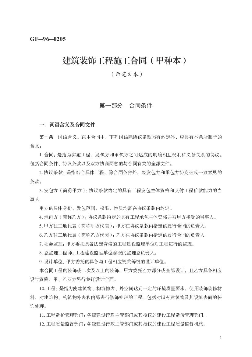 GF-96-0205 建筑装饰工程施工合同(甲种本)(示范文本).pdf