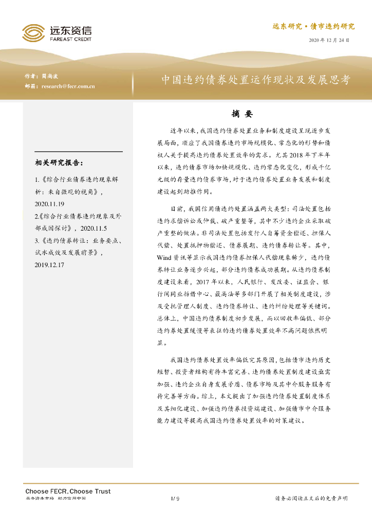 远东资信:中国违约债券处置运作现状及发展思考.pdf