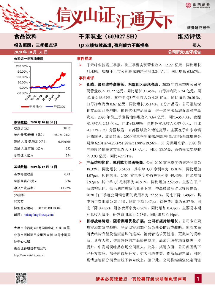 山西证券:千禾味业(603027)-Q3业绩持续高增,盈利能力不断提高.pdf