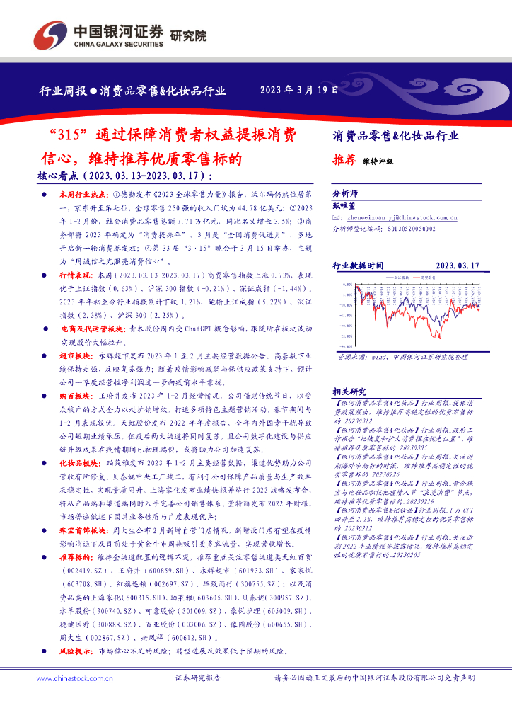中国银河:消费品零售&化妆品行业周报:“315”通过保障消费者权益提振消费信心,维持推荐优质零售标的.pdf