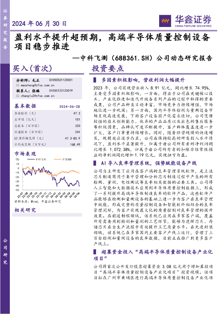 华鑫证券:中科飞测(688361)-公司动态研究报告:盈利水平提升超预期,高端半导体质量控制设备项目稳步推进.pdf