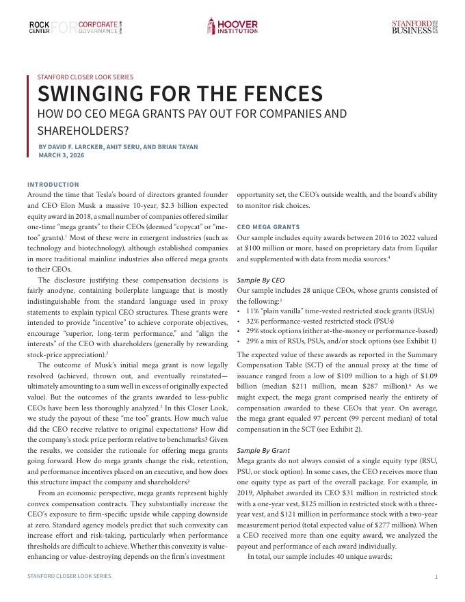 斯坦福商学院:2026年为了公司的利益:CEO巨额赠款如何向公司和股东支付?(英文版).pdf