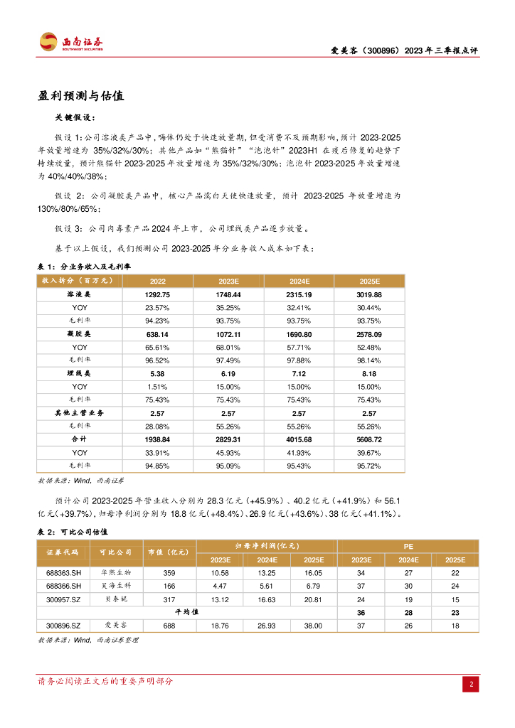 西南证券:爱美客(300896)-2023年三季报点评:三季度增速放缓,未来有望修复.pdf