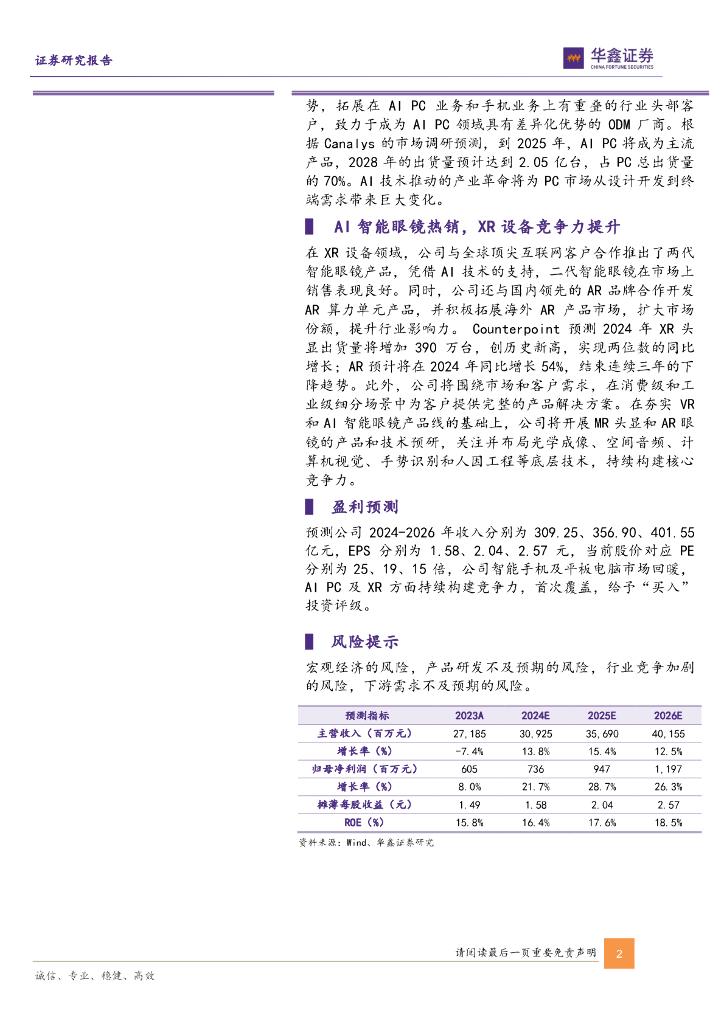 华鑫证券:龙旗科技(603341)-公司动态研究报告:智能手机核心供应商,AIPC和ARVR带来新成长.pdf