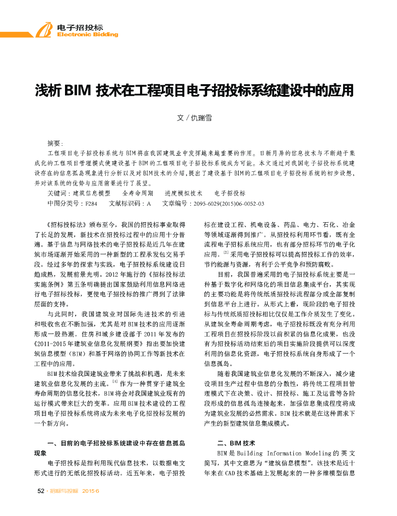浅析BIM技术在工程项目电子招投标系统建设中的应用.pdf