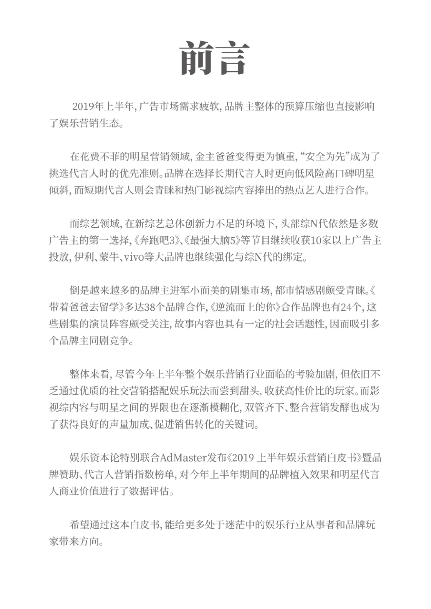 娱乐资本论&AdMaster:2019上半年中国娱乐营销榜单白皮书 .pdf