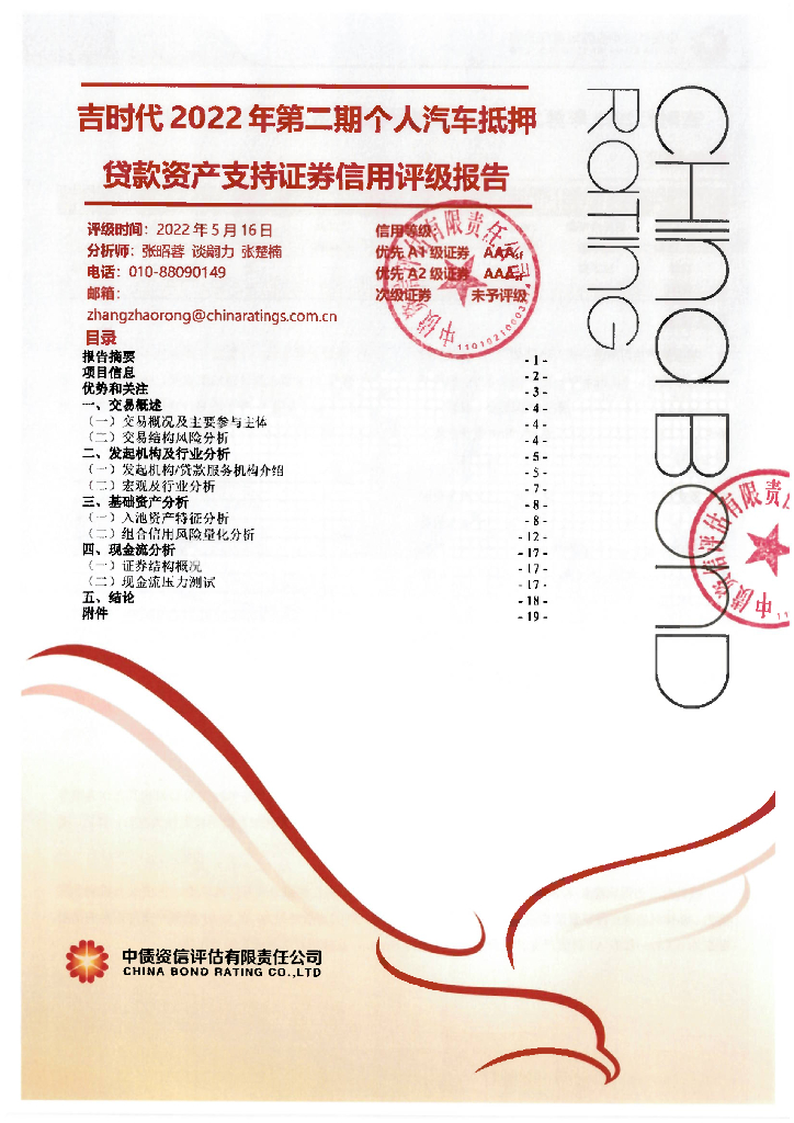 中债资信:吉时代2022年第二期个人汽车抵押贷款资产支持证券信用评级报告及跟踪评级安排.pdf