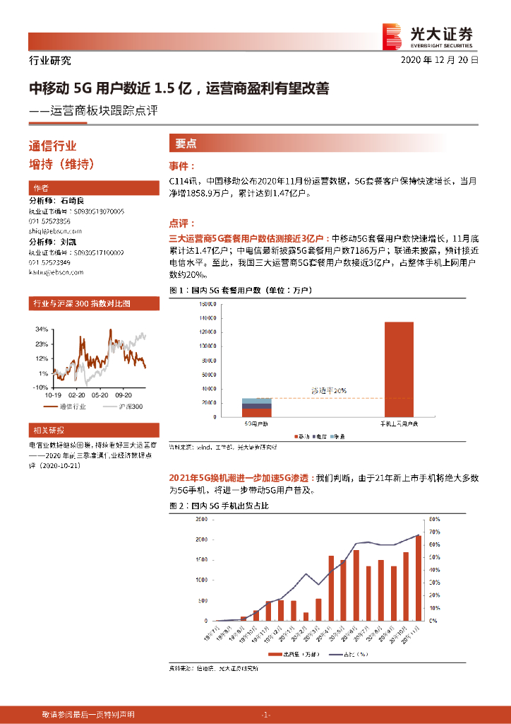 光大证券:通信行业运营商板块跟踪点评:中移动5G用户数近1.5亿,运营商盈利有望改善.pdf