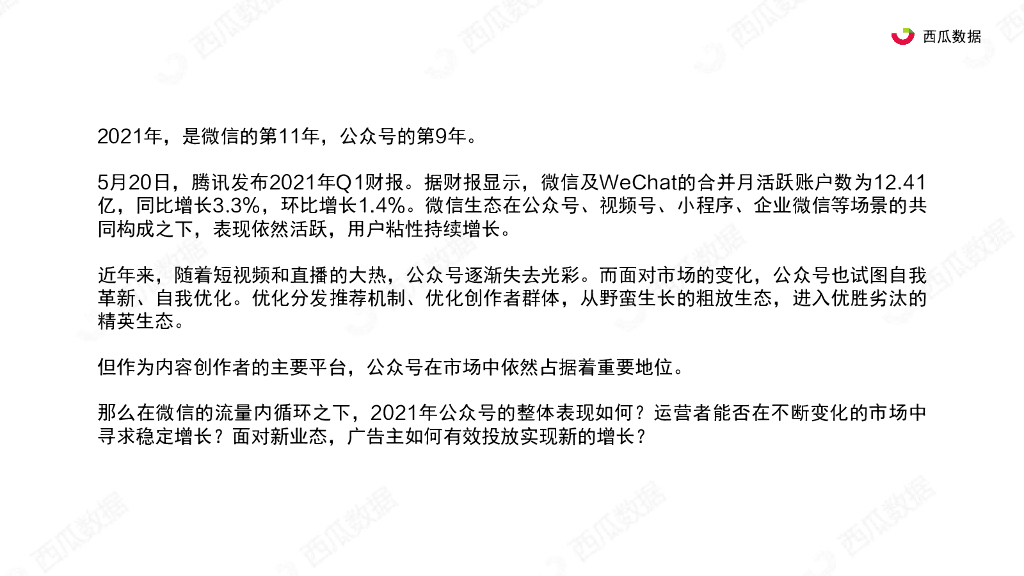 西瓜数据:2021年Q1西瓜数据公众号生态趋势调查报告.pdf