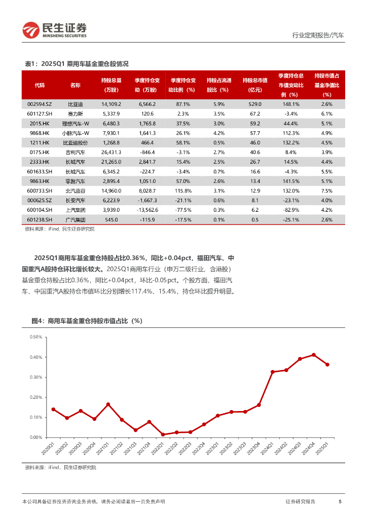 民生证券:汽车和汽车零部件行业周报:25Q1板块持仓上升车展高端供给加速.pdf