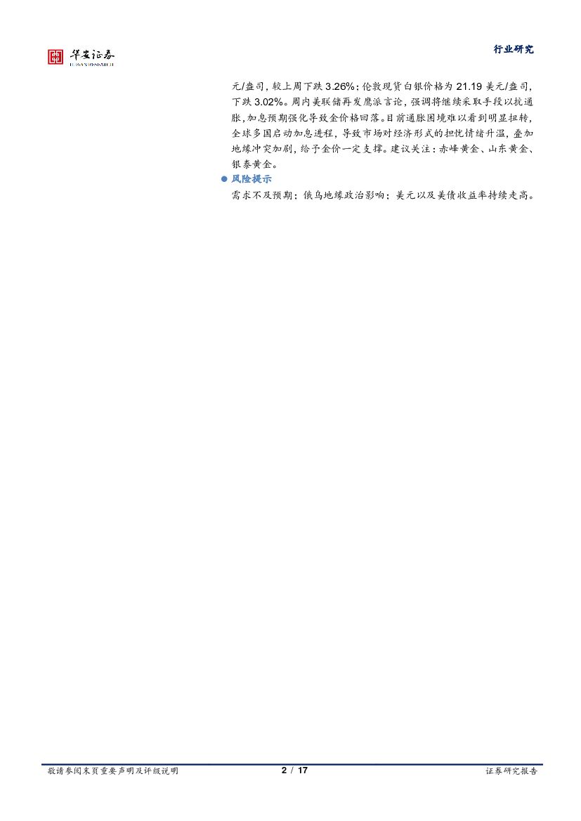 华安证券:有色金属行业周报:美联储加息预期强化,金属价格整体承压.pdf