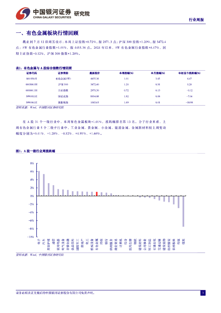 中国银河:有色金属行业周报:有色半年报业绩预告金铜铝表现突出,美联储降息预期升温.pdf