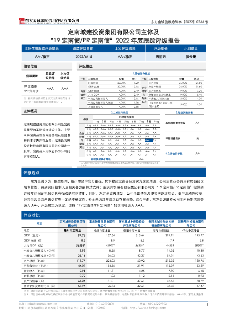东方金诚:定南城建投资集团有限公司主体及“19定南债PR定南债”2022年度跟踪评级报告.pdf