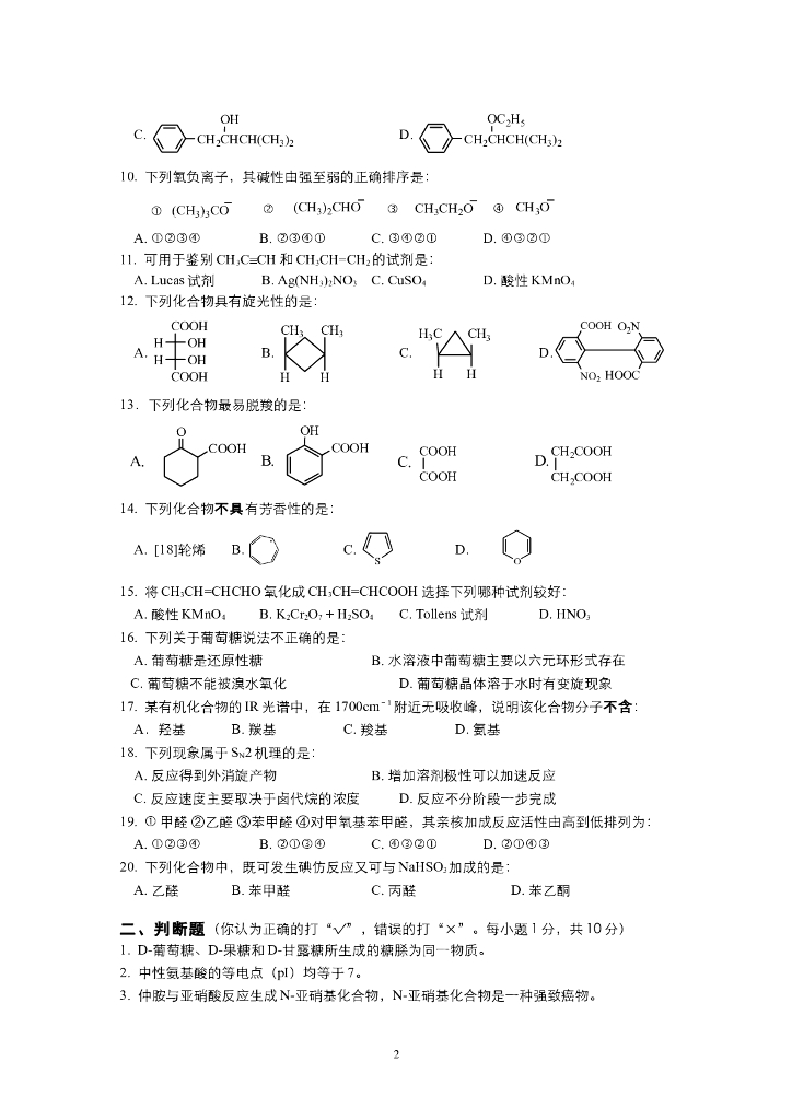 《有机化学》测试试卷集.pdf