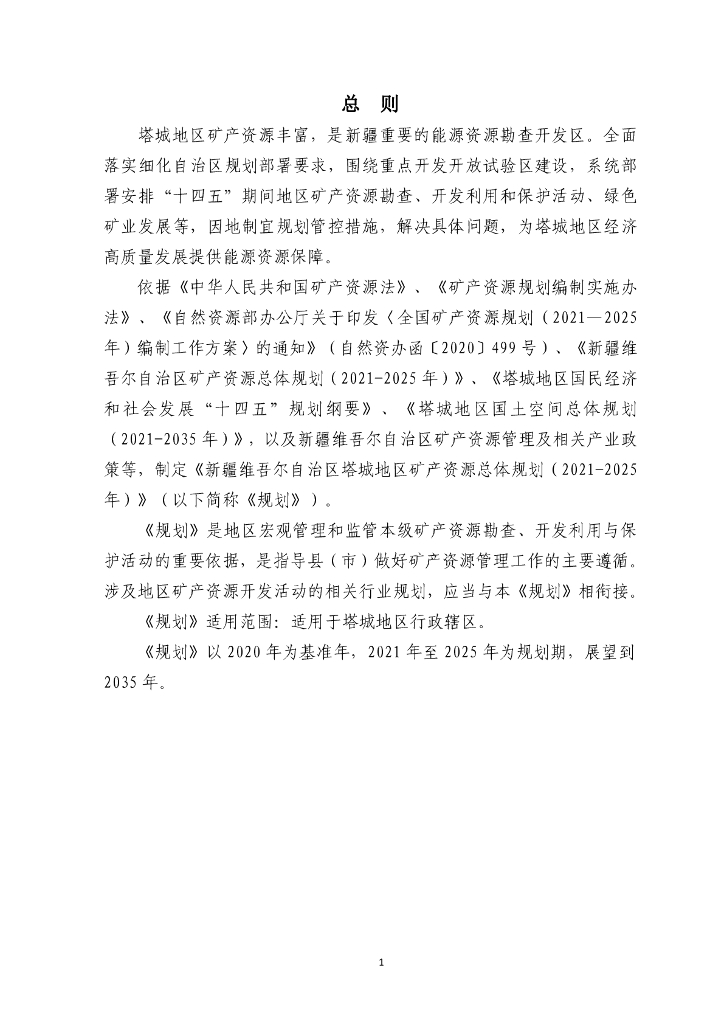 新疆维吾尔自治区塔城地区矿产资源总体规划(2021-2025 年).pdf