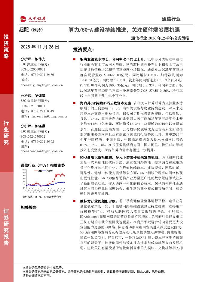 东莞证券:通信行业2026年上半年投资策略:算力/5G-A建设持续推进,关注硬件端发展机遇.pdf
