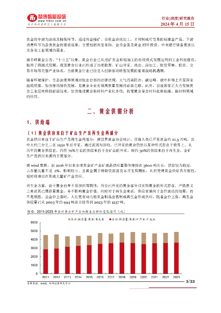 慧博智能投研:黄金行业深度:供需情况、价格分析、产业链及相关公司深度梳理.pdf
