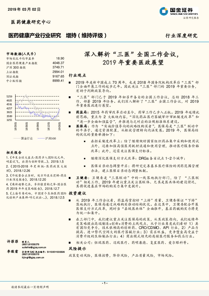 国金证券:医药健康产业行业深度研究:深入解析“三医”全国工作会议,2019年重要医政展望.pdf