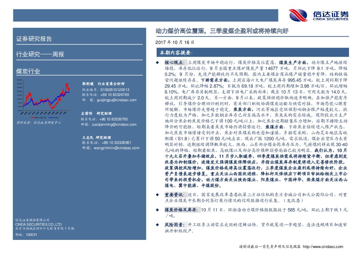 信达证券:煤炭行业每周观点:动力煤价高位震荡,三季度煤企盈利或将持续向好.pdf