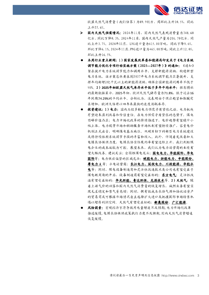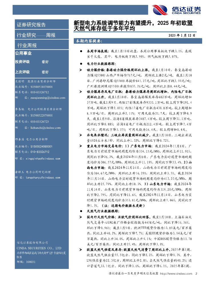 信达证券:公用事业—电力天然气周报:新型电力系统调节能力有望提升,2025年初欧盟天然气库存低于多年平均.pdf