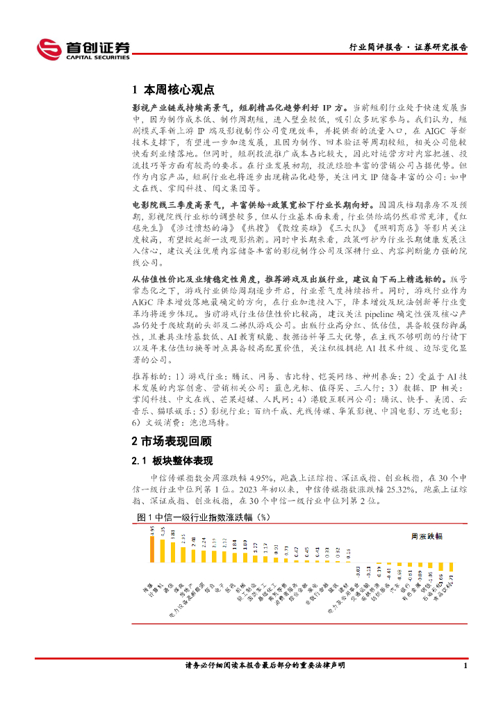 首创证券:传媒行业简评报告:影视产业链或持续高景气,关注游戏、出版防御属性.pdf