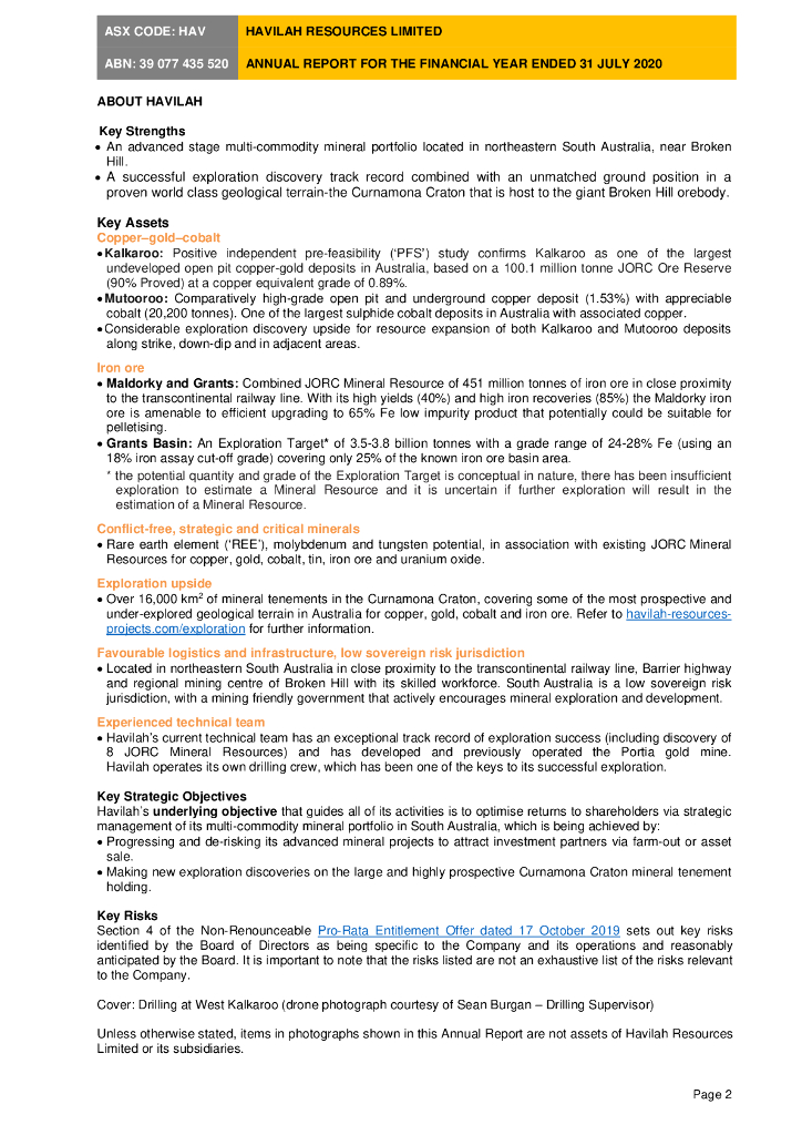 Havilah Resources Limited(HAV)2020财年年度报告(英文版).pdf