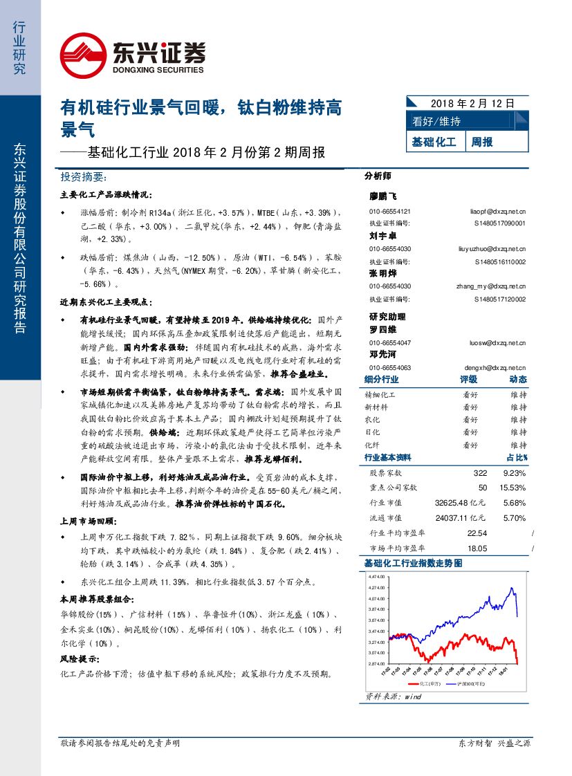东兴证券:基础化工行业2018年2月份第2期周报:有机硅行业景气回暖,钛白粉维持高景气.pdf