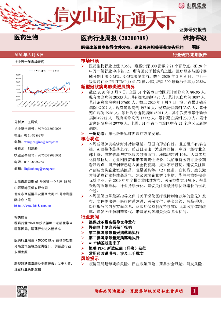 山西证券:医药行业周报:医保改革最高指导文件发布,建议关注相关受益龙头标的.pdf