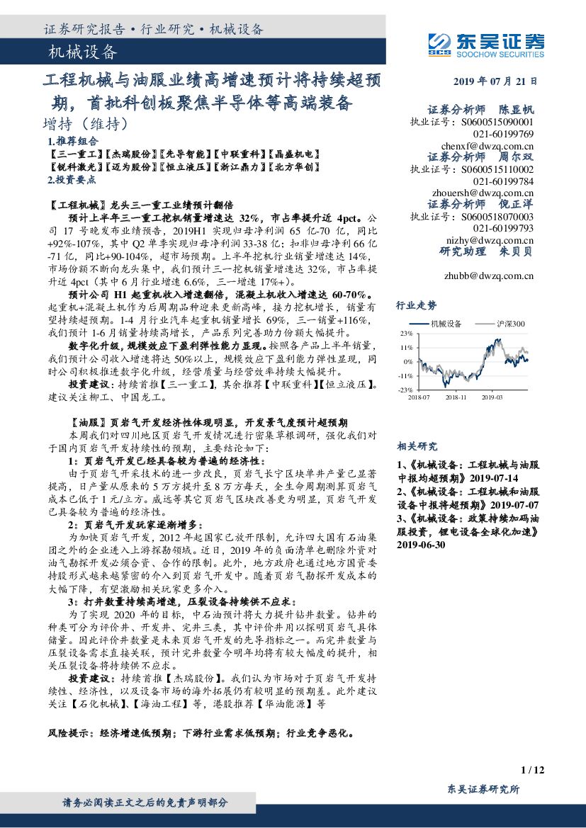 东吴证券:机械设备:工程机械与油服业绩高增速预计将持续超预期,首批科创板聚焦半导体等高端装备.pdf