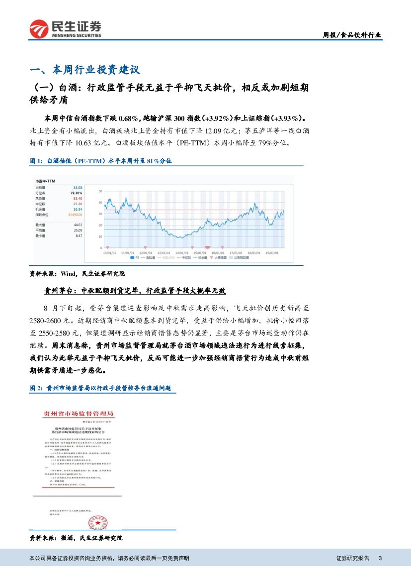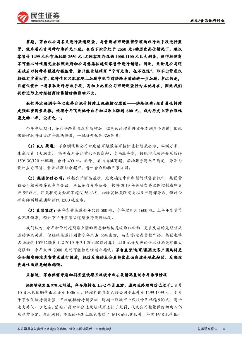 民生证券:食品饮料行业周报:行政监管难以解决目前茅台核心供需矛盾.pdf