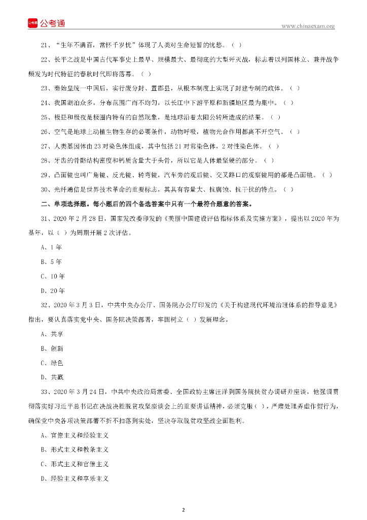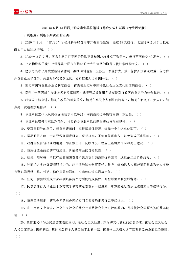2020年6月14日四川雅安事业单位笔试《综合知识》试题.pdf