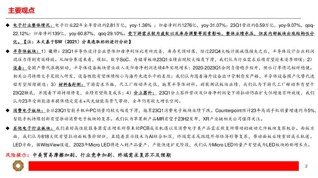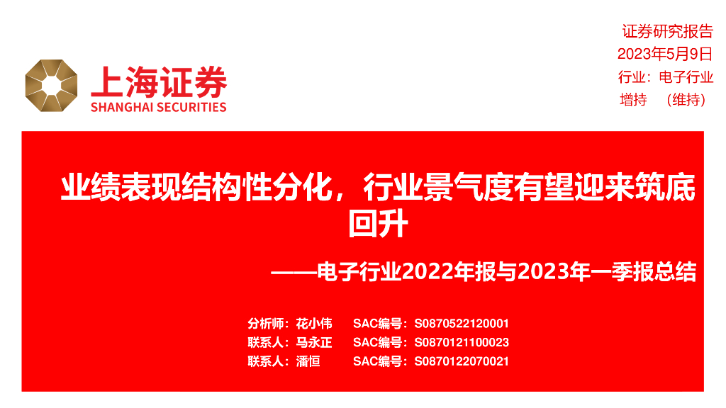 上海证券:电子行业2022年报与2023年一季报总结:业绩表现结构性分化,行业景气度有望迎来筑底回升.pdf