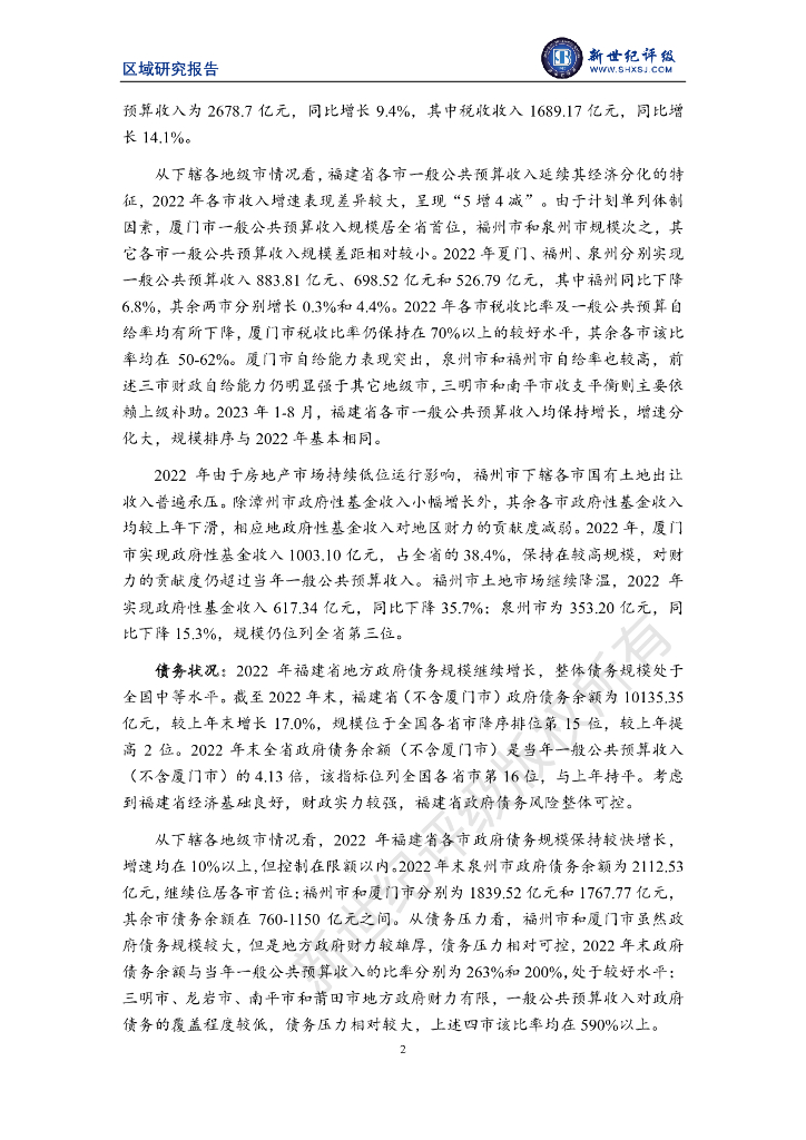 新世纪评级:福建省及下辖各市经济财政实力与债务研究(2023).pdf