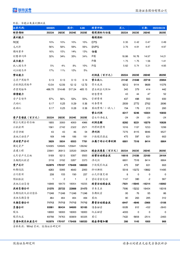 国海证券:华能水电(600025)-2022年报及2023年一季报点评:2023Q1来水偏枯发电量承压,降本增效净利润逆势增长.pdf
