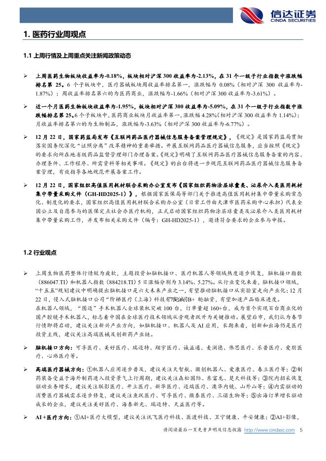 信达证券:医药生物行业周报:春季行情有望启动,关注脑机接口、手术机器人和AI应用.pdf