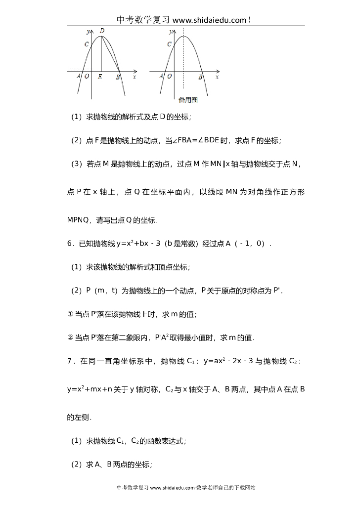 中考数学二次函数压轴题汇编.doc