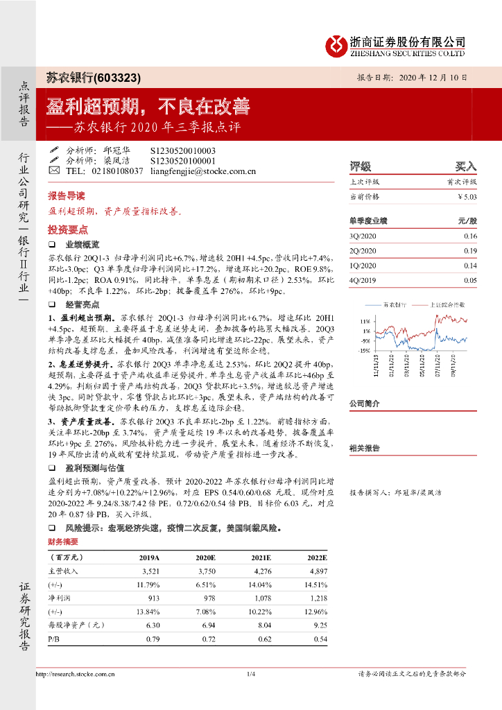浙商证券:苏农银行2020年三季报点评:盈利超预期,不良在改善.pdf