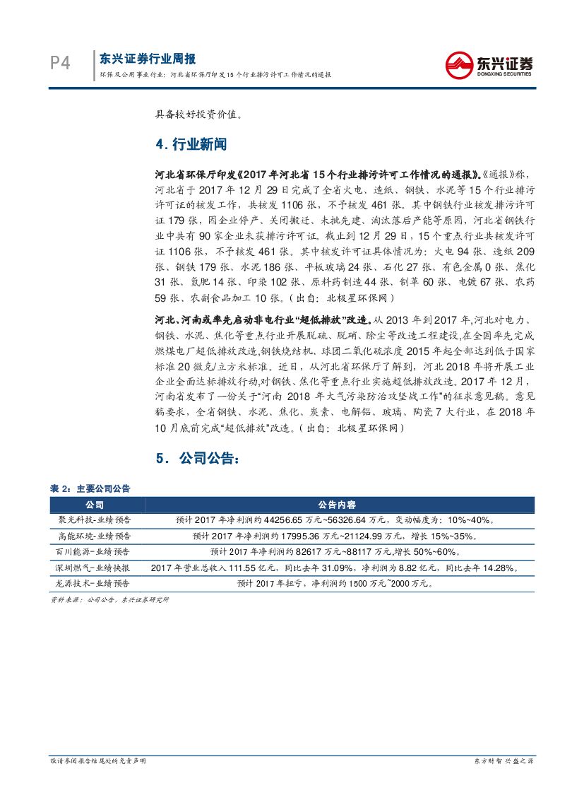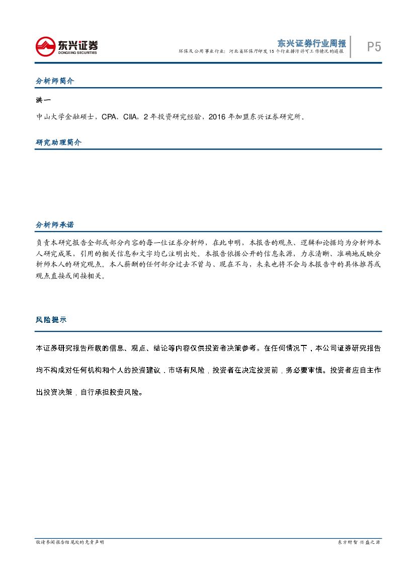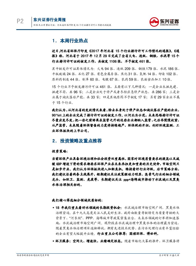 东兴证券:环保及公用事业行业周报:河北省环保厅印发15个行业排污许可工作情况的通报.pdf