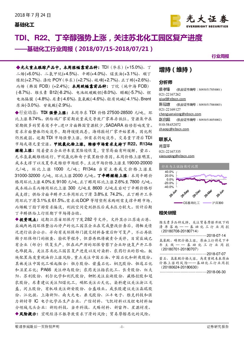 光大证券:基础化工行业周报:TDI、R22、丁辛醇强势上涨,关注苏北化工园区复产进度.pdf